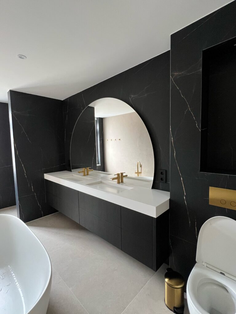 In steeds meer badkamers zien we dit meubel vandaag de dag terug: een zwart badkamermeubel. Zwart is een trendy kleur die de ruimte echt een boost geeft, maar ook zeer tijdloos is. Het is een keer iets anders dan een badkamer met alleen maar wit. U kunt een zwart badmeubel combineren met marmeren vloer- en muurtegels, maar ook in combinatie met betonlook komt een hoogglans zwart badkamermeubel goed tot z’n recht.