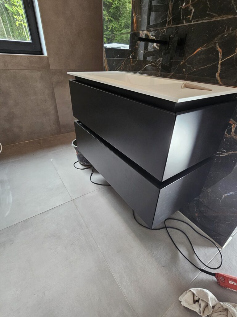 Denkt u dat het plaatsen van een zwart badkamermeubel de badkamer helemaal af maakt? Selecteer het meubel naar wens en specificeer uw keuze. Hoe wilt u hem ophangen, en wat voor afmetingen wilt u? En welke accessoires zorgen voor de finishing touch van het badkamermeubel? Nadat u hem geheel naar wens samengesteld heeft, ontvangt u een gedetailleerde tekening in uw mailbox. Wanneer u akkoord gaat, gaan we aan de slag met de productie van uw nieuwe zwarte badmeubel.